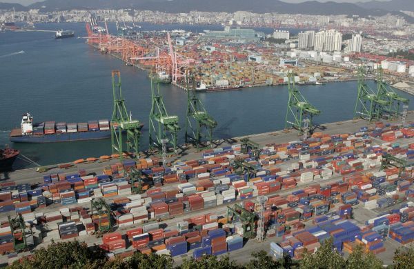 资料图片:韩国釜山港。(新华社)