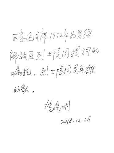 段晓飞表示,此次任务很特殊,此行是受晋绥革命根据地主要创始人之一林枫之子、山西晋绥文化教育发展基金会理事长林炎志,贺龙元帅之女、山西晋绥文化教育发展基金会名誉理事长贺晓明的委托赶赴兴县的,愿为烈士陵园献一份心意,“12月26日,毛主席诞辰日,70岁的贺大姐亲笔手书道,‘不忘毛主席1952年为晋绥解放区烈士陵园题词的嘱托。烈士陵园是英雄的家。’在全国2000多个县里,毛主席唯一给县级陵园题词就是这一处。希望三晋人民都能关注晋西北,关注黑茶山下这座陵园”。