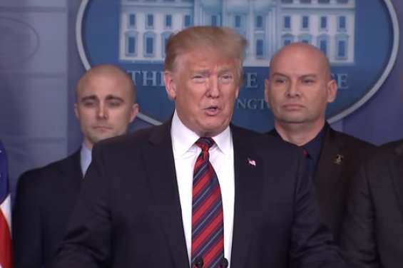 美国总统特朗普首次现身白宫新闻简报室。(图源:视频截图)