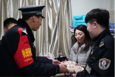 今年春节期间,小金因为工作不能回家,也是他第一次离家在外过节,得知家人来探望,派出所安排安检大队大队长陈晓双为母子俩准备了一餐饺子,提前为他们庆祝节日,母子俩聊着家常,洋溢着团聚的喜悦。