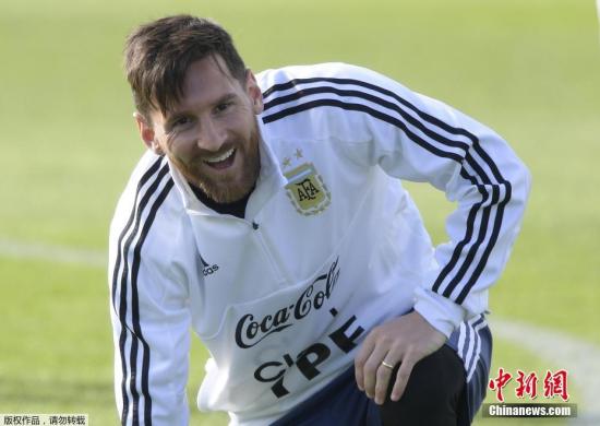 当地时间6月11日,阿根廷国家队在莫斯科附近的布龙尼齐进行适应性训练,阿根廷当家球星梅西看起来心情不错,面露笑容。