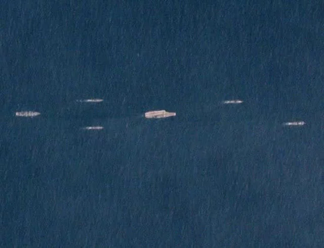 如果直接拍摄就无法拍摄出如此壮观的场面。舰队队列式也是一种实力的展示,美国军事专家杰弗里.刘易斯也称:“这是一幅令人难以置信的画面。”