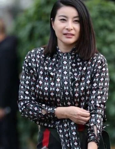 白色雪纺上衣,没有其他修饰,让郭晶晶给接地气,同时搭配一条黑色裤子,是家庭主妇该有的样子。