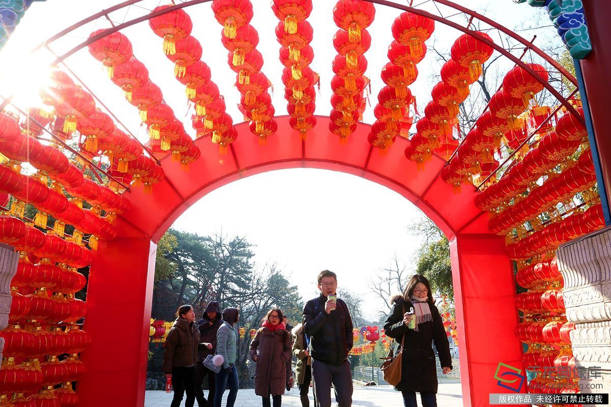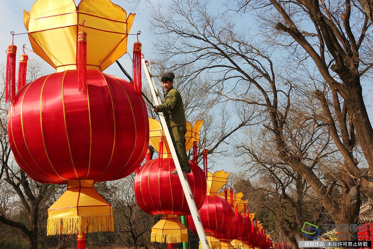 1月27日,北京市怀柔区红螺寺旅游景区开启“春节游园会”景观布置,6000多盏大红灯笼及宫灯高挂景区,为春节游客营造了喜庆祥和的节日氛围,迎接红螺寺第二十五届祈福游园会(图片来源:tuku.qianlong.com)。卜向东摄 千龙网发