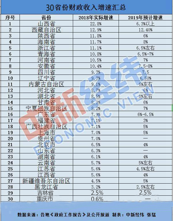中新经纬客户端2月3日电(张猛)近日,除天津外,30省份相继公布了2018年度财政收入增速,在2019年减税降费大背景下,各省份财政收入如何得到保障引起大众关注。