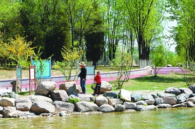 游人在妫水河畔的公园内游玩。光明日报记者 张云摄/光明图片