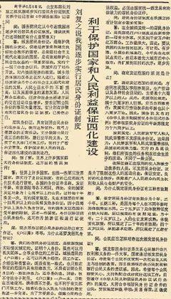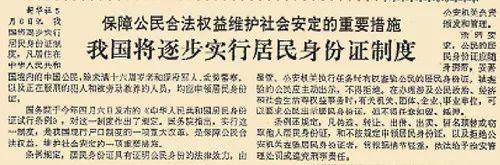这一制度的相关规定来自1984年4月6日国务院发布的《中华人民共和国居民身份证试行条例》。国务院指出,实行这一制度,是我国现行户口制度的一项重大改革,是保障公民合法权益,维护社会安定的一项重要措施。