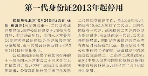 到2010年末,全国已有10.4亿人领取了“二代证”。为尽快结束一、二代身份证并用局面,保护公民信息安全,加强社会管理,打击违法犯罪,“一代证”自2013年1月1日起停止使用。(2011年10月25日《北京日报》4版,《第一代身份证2013年起停用》)
