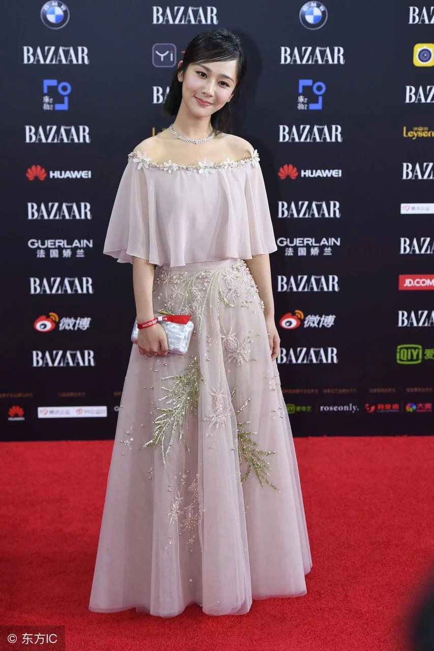 杨紫身穿露肩长裙出席某活动现场