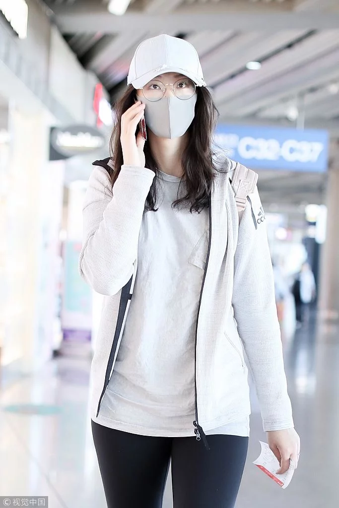 2018年5月3日,北京,惠若琪和新婚老公杨臻博现身机场,二人疑似外出度蜜月,惠若琪一身运动装扮口罩遮面,而老公穿着也很朴素,两人一前一后登机,低调不同框。