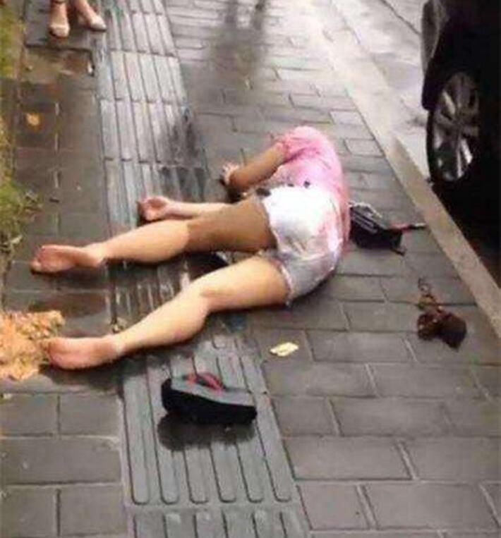 女子躺在街头, 路人看不下去准备报警,