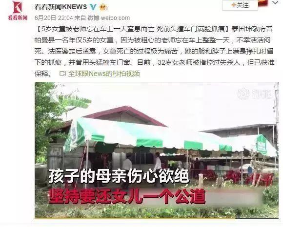 2018年5月2日,潮州市湘桥区一女童被遗留在校车上因窒息而死,随车老师因涉嫌过失致人死亡罪被刑拘。