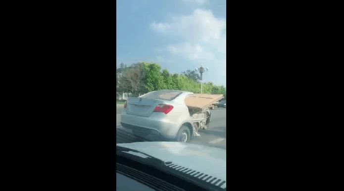 前段时间,来自广东的男子关先生就在街头是拍到“最牛”改装车,居然是将小车的后半部分和电动三轮车给改装到了一起,可以说是辆全景天窗5个轮胎的“豪华”车!
