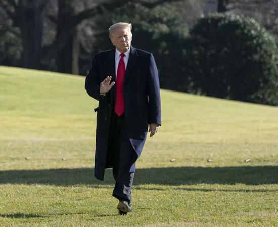 ▲当地时间2019年1月6日,美国华盛顿,美国总统特朗普离开白宫前往戴维营,接受记者采访。(视觉中国)