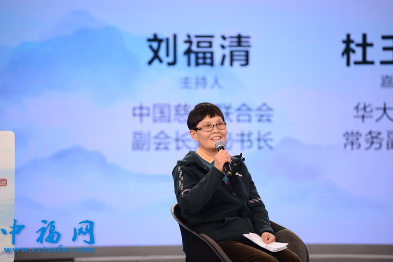 中国慈善联合会副会长兼秘书长刘福清主持圆桌(人民网 于凯摄)