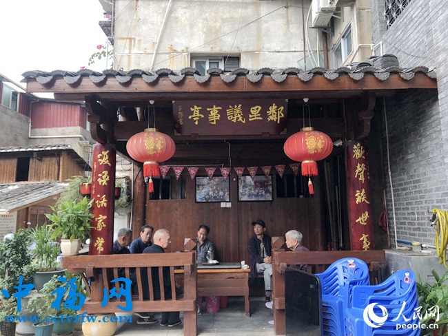 邻里议事亭中的老人。人民网 钱嘉禾摄