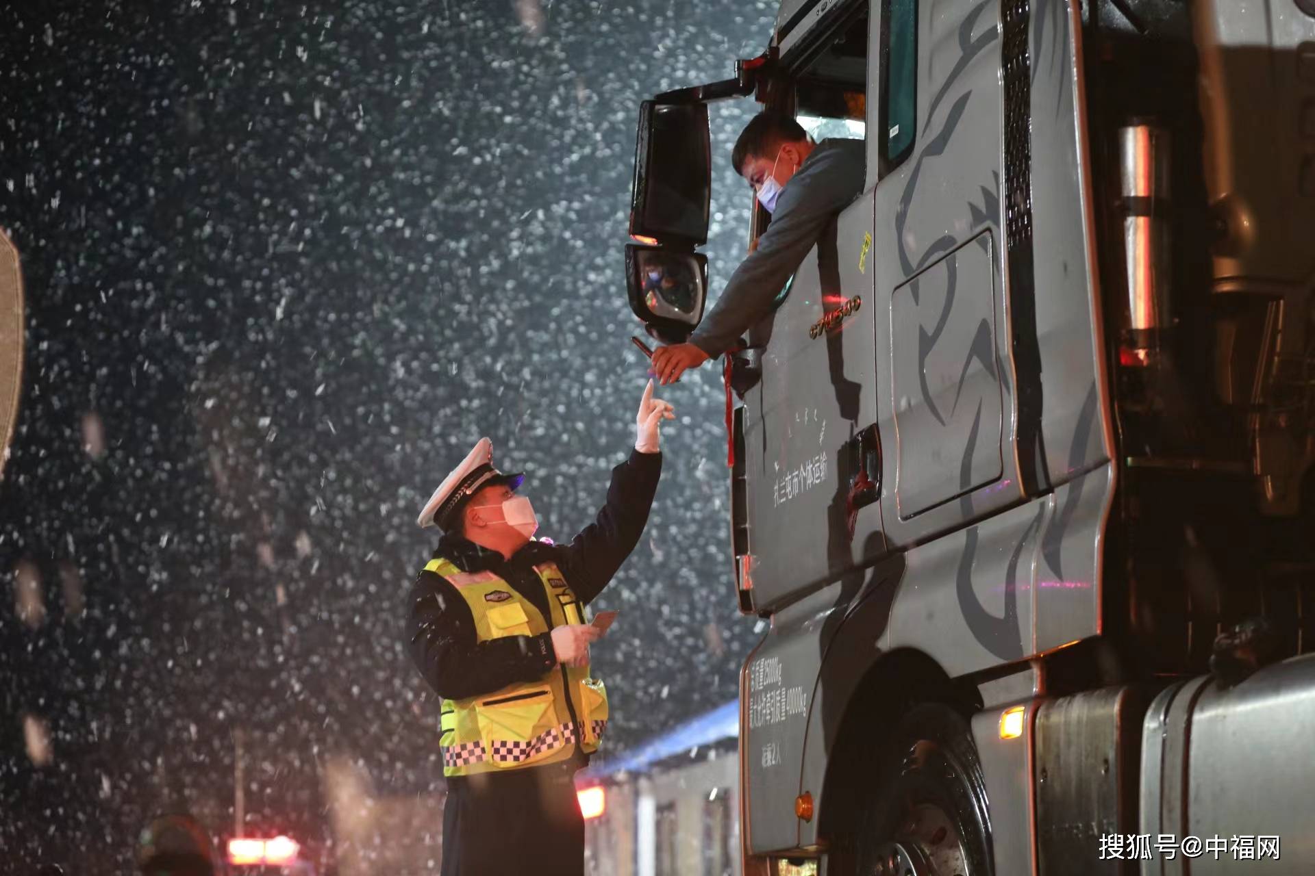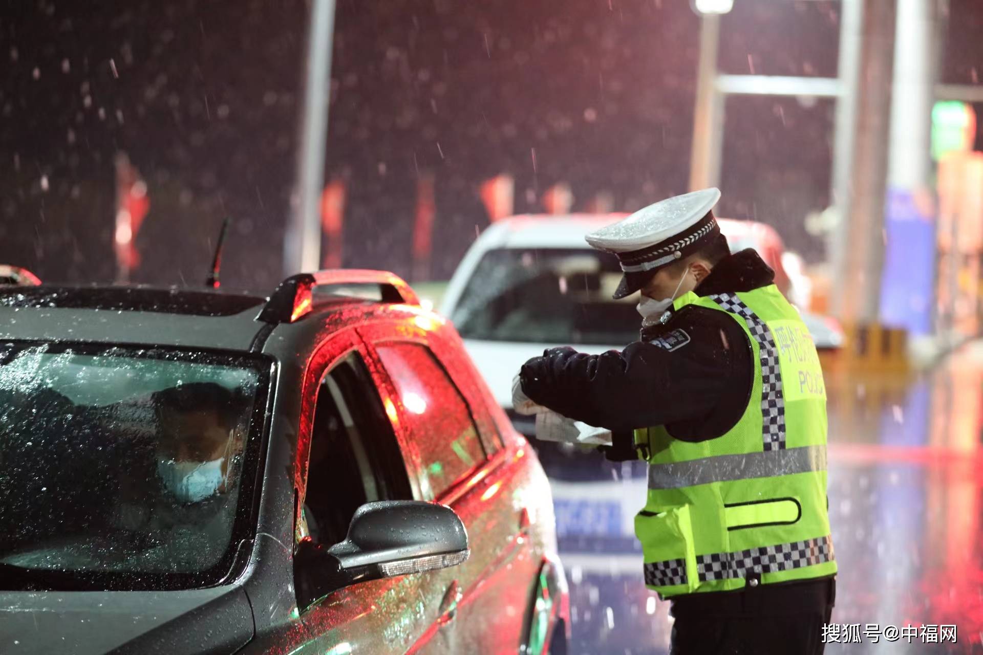 记者注意到,湿滑泥泞的风雪夜之路,尤为给过往的车辆及行人造成了交通不便。不过,该市公安局交通管理大队民警第一时间坚守在疫情防控执勤卡口,认真查验来往车辆人员信息,刚毅定格夜幕之下“警察蓝”浴“雪”奋战的画面,不仅为祥和节日平安守夜,更以风雪无阻的温情实举保驾护航城乡群众,默默升温警民鱼水深情。