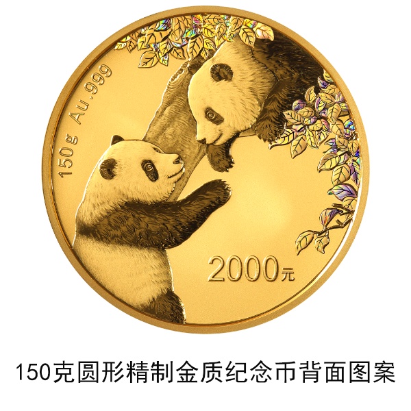 150克圆形金质纪念币为精制币,含纯金150克,直径60毫米,面额2000元,成色99.9%,最大发行量10000枚。