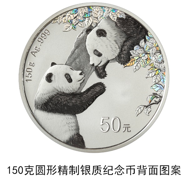 150克圆形银质纪念币为精制币,含纯银150克,直径70毫米,面额50元,成色99.9%,最大发行量30000枚。