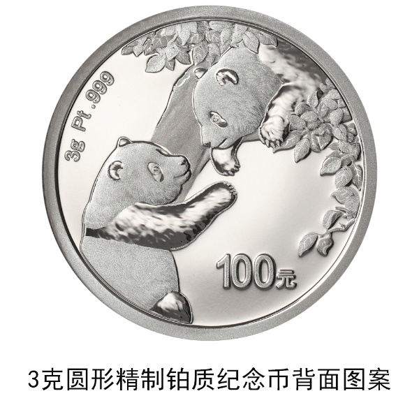 3克圆形铂质纪念币为精制币,含纯铂3克,直径18毫米,面额100元,成色99.9%,最大发行量30000枚。