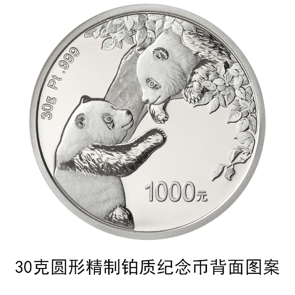 30克圆形铂质纪念币为精制币,含纯铂30克,直径32毫米,面额1000元,成色99.9%,最大发行量5000枚。
