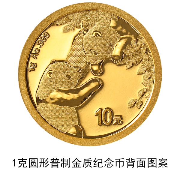 1克圆形金质纪念币为普制币,含纯金1克,直径10毫米,面额10元,成色99.9%,最大发行量500000枚。