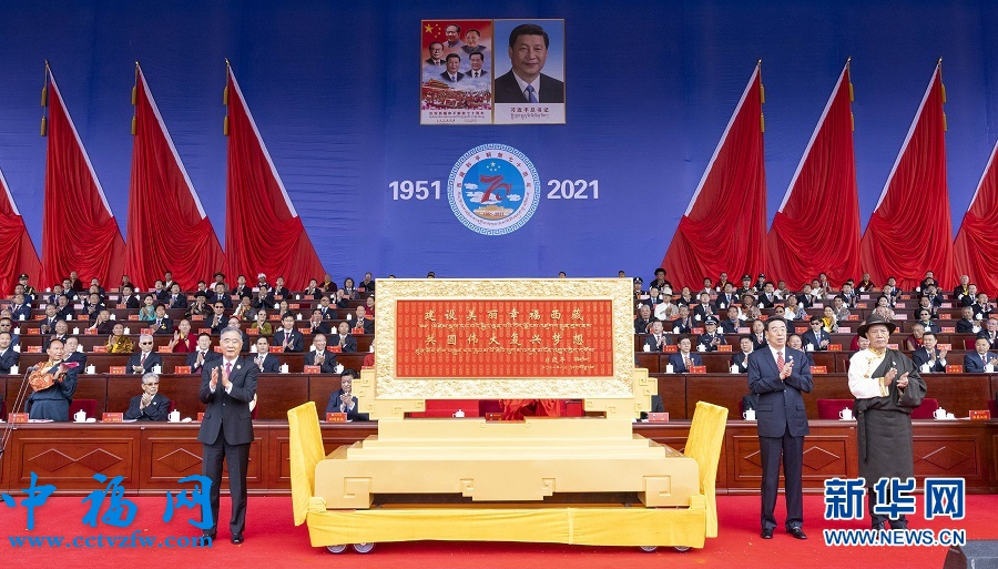 庆祝西藏和平解放70周年大会隆重举行 习近平在贺匾上题词